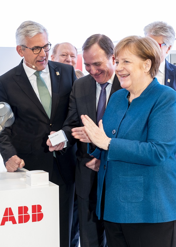 ▲ ABB부스에 방문한 앙겔라 메르켈 독일 총리와 스테판 뢰프벤 스웨덴 총리
