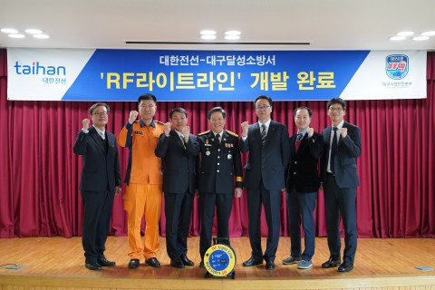 ▲ 대한전선이 RF라이트라인 개발 완료 후 대구달성소방서 관계자와 기념 촬영을 하고 있다. <사진 : 대한전선>