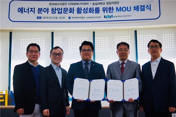 한국에너지공단 신·재생에너지센터(이상훈 소장)가 지난 4월 15일, 숭실대학교 벤처관 회의실에서 에너지 분야 창업문화 활성화와 관련, 숭실대학교 창업지원단과 업무협약을 체결했다.