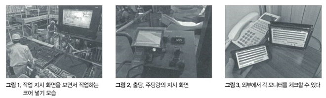 ② 제조 시에 각 공정 상의 모니터로 제조 지시나 어드바이스를 격납해 표시.