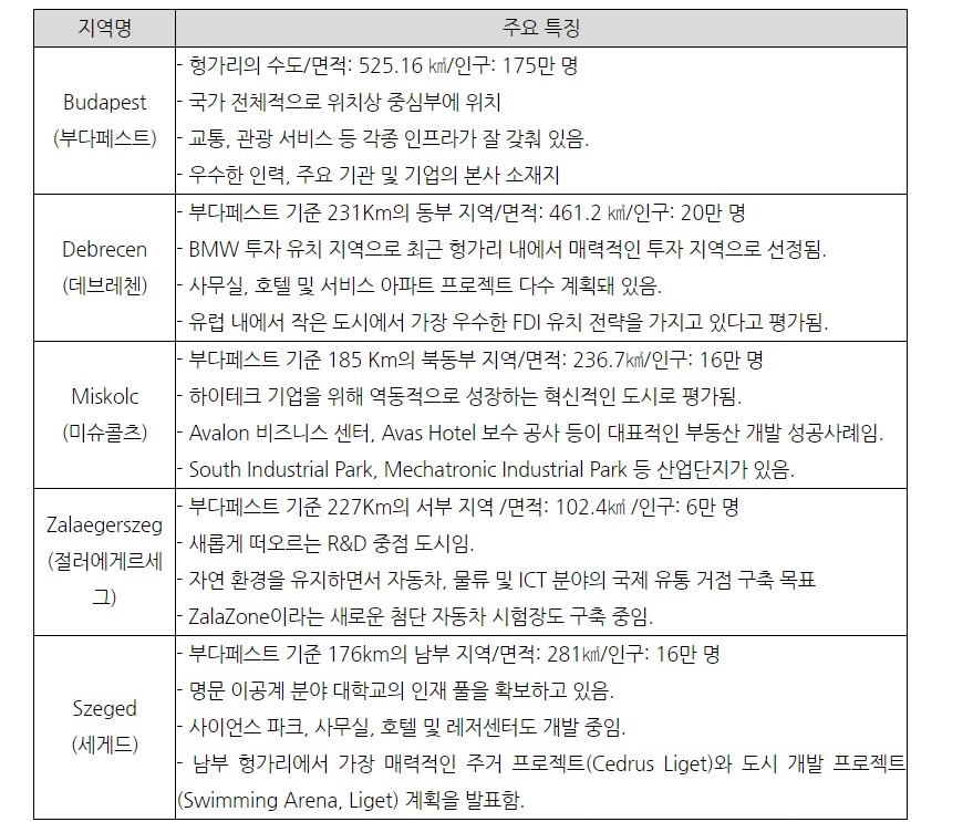 자료 : 헝가리 투자청 및 KOTRA 부다페스트 무역관 자체