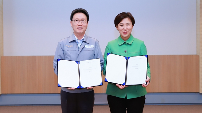 ▲ 현대중공업 최고 디지털 책임자(CDO) 김태환 전무(좌)와 한국마이크로소프트 이지은 엔터프라이즈 글로벌 사업본부 부사장(우)