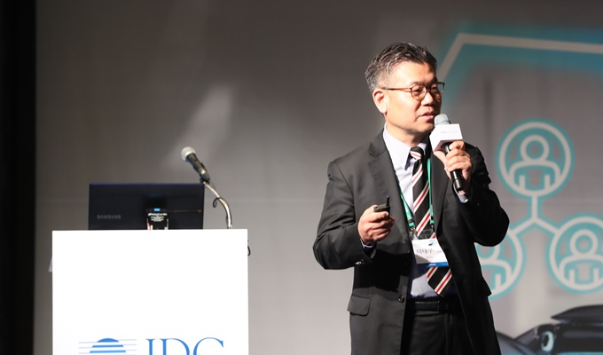 ▲ IDC 파이낸셜 서비스 서밋 2019에서 키노트 발표 중인 이태우 전무