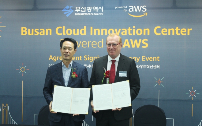 부산광역시와 아마존웹서비스(Amazon Web Services, 이하 AWS)는 스마트시티 이니셔티브 발전과 공공부문 혁신 강화를 위한 새로운 협약을 부산 클라우드 혁신센터에서 지난 25일 체결했다.