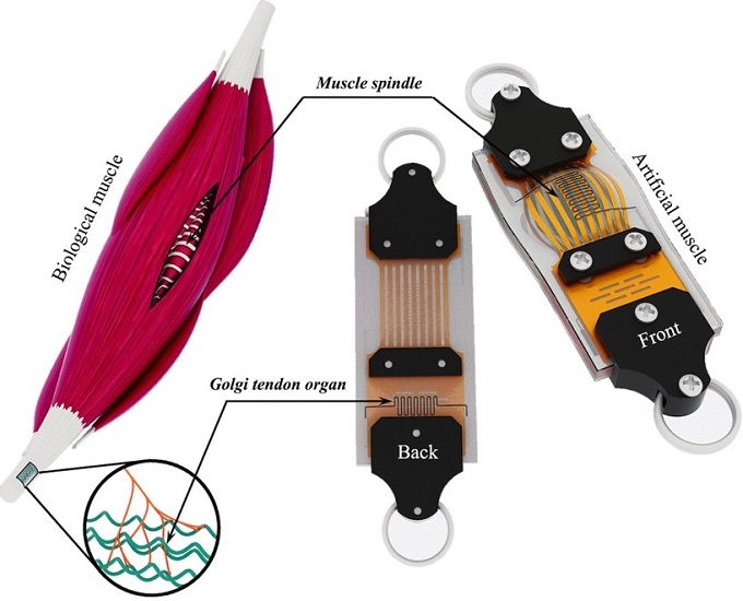 ▲ 그림 1. 생체 근육과 인공 근육의 고유수용기 비교