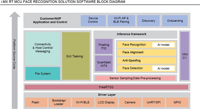 발표된 MCU 기반 안면 인식 솔루션은 프리 RTOS(FreeRTOS)를 운영체제로 하는 NXP의 최신 크로스오버 MCU, i.MX RT106F를 기반으로 했다.