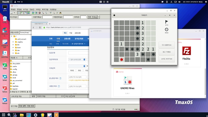 또한 티맥스OS 내의 지뢰찾기 게임과 파일 전송 플랫폼 ‘파일질라(FileZilla)’ 등의 신규 앱도 추가됐다. 티맥스오에스는 앞으로도 사용자가 원하는 리눅스 기반의 다양한 앱을 지속적으로 추가해 나갈 것이라고 전했다.