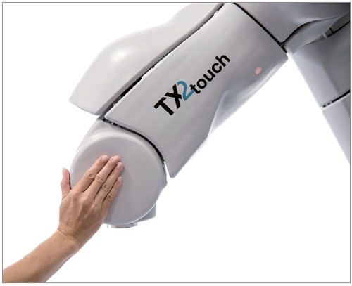 사람과 기계의 직접적인 상호 작용이 필요한 작업의 경우, 로봇은 HRC 시나리오에 대해 엄격한 규정을 준수하는데, 이는 6축 TX2-90L Touch의 옵션인 에어 스킨(Air-Skin)에서 엿볼 수 있다.