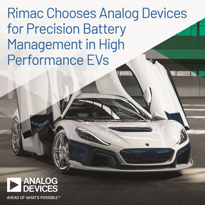 아나로그디바이스(ADI)는 리막 오토모빌리(Rimac Automobili)의 배터리 관리 시스템(BMS)에 ADI의 고정밀 BMS IC가 장착될 예정이라고 밝혔다. ADI의 기술은 리막의 BMS가 배터리로부터 최대한의 에너지와 용량을 끌어낼 수 있도록 언제든지 충전 상태와 그 밖에 다른 배터리 관련 파라미터들에 대한 신뢰할 수 있는 정보를 제공한다.