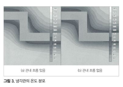 냉각관 내의 3차원 탕흐름 해석에 의해 부위마다의 흐름 상태를 계산, 여기에서 열전도율을 산출해 주조 시뮬레이션에 반영시킴으로써 부위마다의 전열량을 보다 정확하게 계산하고, 금형의 온도 계산 정도를 향상시킨다(그림 3).