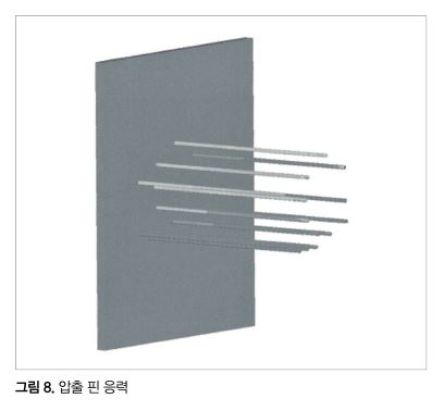 또한 압출 핀에 의한 제품 취출 공정에서는 각 핀에 발생하는 반력이나 응력을 평가함으로써 필요한 핀의 개수 검토나 레이아웃 설계에도 도움이 되고 있다(그림 8).