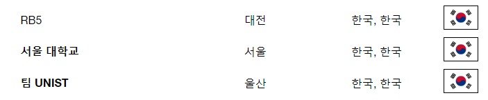 선정된 77개 팀 중 우리나라에서도 RB5, 서울대학교, 팀UNIST 등 3개 팀이 자격을 얻었다. 자격을 갖추기 위해서는 각 팀이 만들고자 하는 기능성 아바타 솔루션의 전문성, 능력, 계획을 개략적으로 정리한 일련의 질문에 답해야 했다.