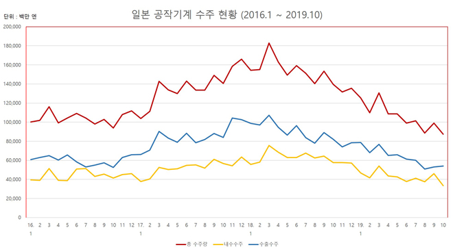 ▼ 2019년 10월 일본 공작기계 수주 현황