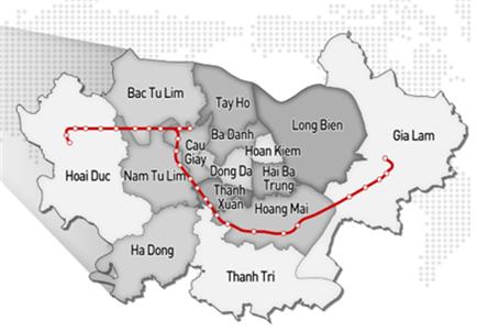 하노이 도시철도 8호선은 하노이 중심을 동서로 가로지르는 총연장 37km로 지상구간 18km, 지하구간 19km로 건설된다. 정거장 26개소와 차량기지 2개소로 이루어져 있다.