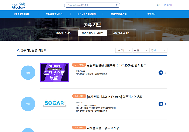 지난해 스마트선도산단(반월시화, 창원산단)에서 입주기업 대상으로 생산품 제조 매칭 서비스를 시범 진행했고, 샤플(시제품), 쏘카(교통), ADT캡스(안전·환경), 삼성SDS(물류) 등 국내 약 25개 민간 공유서비스 기업이 참여하여 유휴자원 공유, 공동 기업활동, 산단정보 활용 촉진 등과 관련된 서비스를 개발했다.