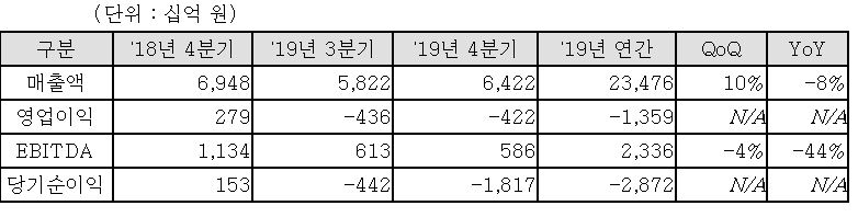 LG디스플레이는 31일, 한국채택국제회계기준(K-IFRS)에 따라 2019년 4분기 매출 6조4217억 원, 영업손실 4219억 원을 기록하며 적자로 전환했다.