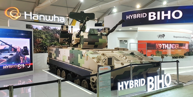 한화는 250㎡ 규모의 통합 부스를 열고 인도 시장을 겨냥한 최신 지상 무기체계와 첨단 방산 전자 제품들을 중점적으로 소개한다.