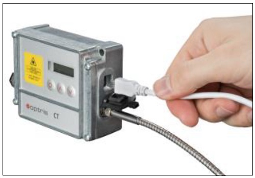 제공된 USB 케이블로 일렉트로닉 박스 옆 부분에 결합하여 Ratio 소프트웨어 혹은 IRmobile 앱에 연결하여 측정된 온도 데이터를 저장 및 분석할 수 있다.