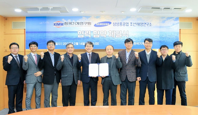 한국기계연구원은 2월 14일 삼성중공업 조선해양연구소와 스마트 선박 기술 연구 협력을 위한 협약식을 개최했다.