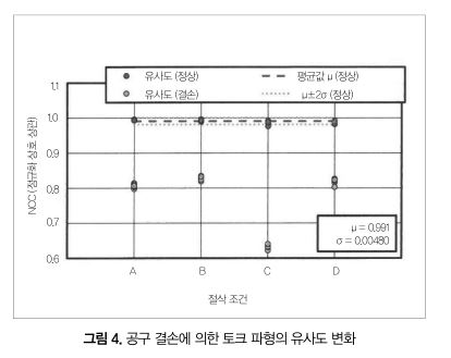 토크 파형이 유사하면 정상이라고 판정할 수 있기 때문에 이번 연구에서는 2개의 토크 파형의 유사도를 정규화 상호 상관(NCC)의 값으로 평가한다.