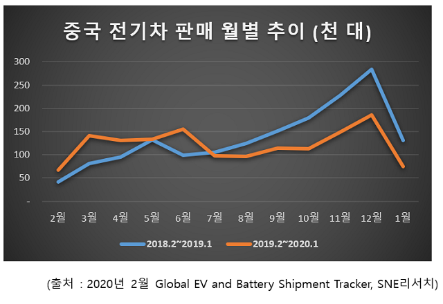 계속되는 중국 전기차 배터리 시장 침체는 중국 정부의 보조금 축소 조치 영향과 경기침체 확산 등의 요인이 여전히 남아있고, 코로나19의 확산으로 인한 공장 가동 중단까지 겹치면서 현지 전기차 생산과 판매가 대거 위축된 것이 원인으로 꼽힌다.