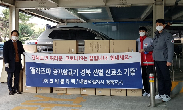 코비플라텍은 대한적십자사 경북지사를 통해 경북지역 선별진료소 38곳에 총 1억원 상당 규모의 플라즈마 공기살균청정기 ‘에어플라’를 기증한다고 밝혔다.