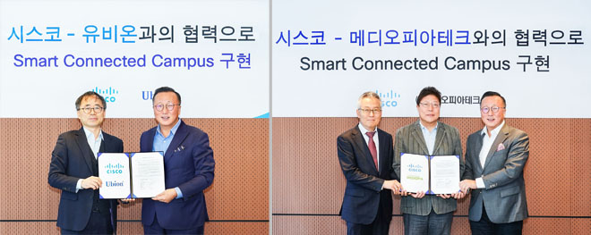 시스코 시스템즈(이하 시스코)는 국내 대학들의 스마트 커넥티드 캠퍼스 구현을 위해 e러닝 서비스 전문 개발 업체인 ‘유비온’, 교육 솔루션 전문 기업인 ‘메디오피아테크’와 각각 업무 협약을 체결했다고 밝혔다.