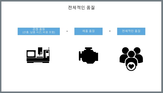 제조업체들은 산출과 수요의 균형을 맞추면서 품질을 유지하기 위해 노력해야 한다. 만약 부적격 품질의 부품을 생산한다면 생산 일정이 틀어지게 되고 자연히 생산 비용을 올라가게 될 것이다. 마구잡이식 계획으로 인해 생산 중단과 기계의 유휴가 발생하고, 중단으로 발생한 예기치 못한 문제들을 처리하느라 작업장의 노동 비용은 배가된다.