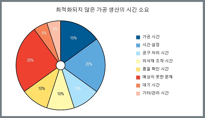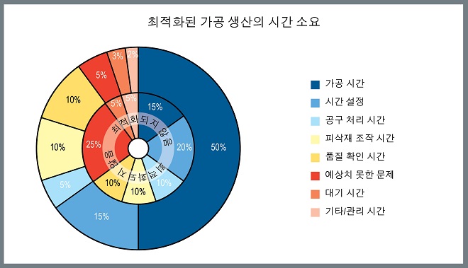 가공 작업의 최적화와 더불어 부품 및 공정 품질을 포함한 문제에 주의를 기울이는 것 외에도, 전반적으로 제조 조직의 관점에서 계획을 짜고 가공 시간 소모 요소를 지속해서 분석하면 가공 부품에 사용할 수 있는 시간을 크게 늘리고 효율성과 유연성을 증가시킬 수 있다.