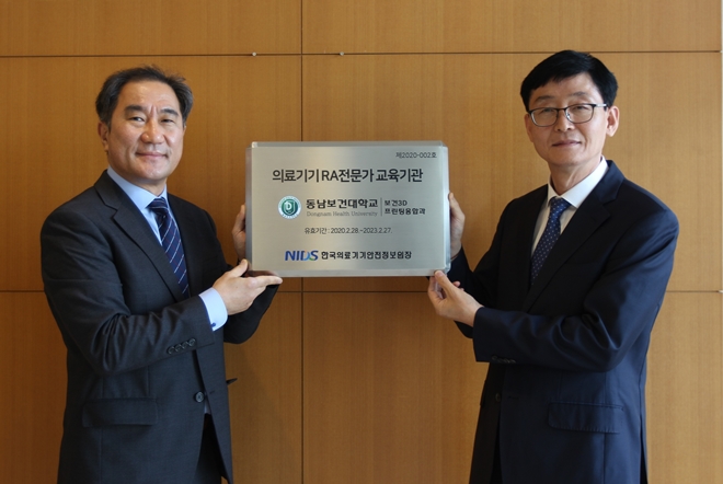 동남보건대학교 보건3D프린팅융합과가 한국의료기기안전정보원(NIDS)으로부터 ‘의료기기 규제과학(RA) 전문가 교육기관’으로 지정됐다.