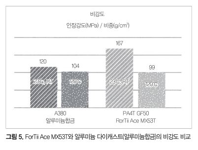 ⑦ 120℃에서 알루미늄 다이캐스트와 동일한 비강도(그림 5).