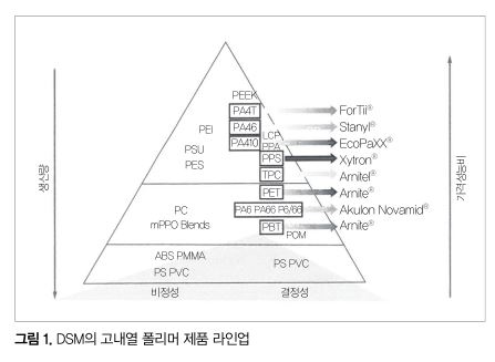 동사는 고내열 폴리머를 중심으로, 제품 포토폴리오를 전개시키고 있다. 동사가 개발한 제품으로 4개의 탄소 직쇄 폴리머로 구성되는 PA4T, PA46, PA410 등의 소재가 있다. 이들은 엔플라의 대표적인 소재로서 알려진 PA66을 내열성, 내약품성, 강도의 면에서 크게 능가하는 슈퍼 엔지니어링 플라스틱(이하 슈퍼엔플라)로서 자리매김되어 있다.