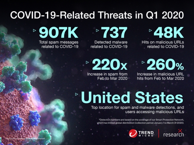 사이버 보안 솔루션 기업 트렌드마이크로가 신종 코로나바이러스 감염증(이하 코로나19) 사태와 관련한 보안 위협 사례를 발표했다.