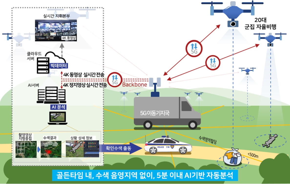 컨소시엄은 5G를 활용하여 실시간 획득한 임무데이터를 인공지능학습․추론으로 분석하고, 비(非)가시권 자율·군집 비행 기술이 적용된 응용서비스를 제공하는 개방형 플랫폼을 구축해 나갈 계획이다.