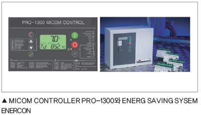 콤프레샤 마이컴 컨트롤러 PRO-1300은 압력, 온도, 시간 등 160가지의 표시 기능이 있으며, 자체 진단 기능으로 각종 에러 상태 표시 및 기록을 유지한다. 또한, 중앙제어반에서의 원격 리모트 운전 기능도 제공한다.