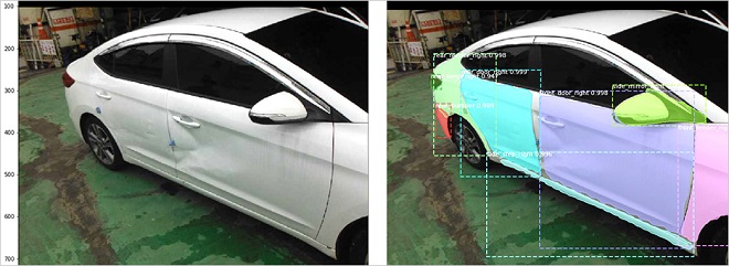 ▲ 'AOS 알파' AI 모델링을 통한 차량 부품과 손상 인식 모습