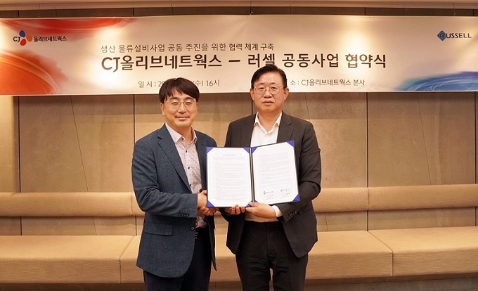 CJ올리브네트웍스는 최근 러셀과 생산 물류설비 공동 사업 협약을 체결하고, AI팩토리 사업에 필요한 ▲기술개발 ▲생산 물류설비 제작 및 구축 ▲영업확대 및 마케팅에 협력하기로 했다.