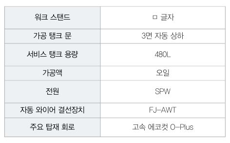 X, Y 스트로크 350×350mm, 정사각형이 되는 ㅁ자형 워크 스탠드(그림 2), 3면 자동 상하식 가공 탱크를 채용함으로써 세팅의 간이화, 설치한 워크의 안정성 향상, 가공 후의 워크 변형 경감이 가능하며, 모터 코어 금형이나 반도체 제품 금형 등의 정사각형 금형가공의 수요에 대응할 수 있다.