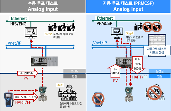 하지만 PRMCSP를 도입한다면 현장에 엔지니어가 가지 않고도 현장 계기와 제어 시스템 간의 연결 상태 확인 및 루프 테스트를 자동으로 할 수 있으므로 시운전 작업 속도 향상뿐만 아니라 현장 공수를 줄일 수 있게 되어 시운전 및 유지보수 작업의 전반적인 품질이 향상된다.