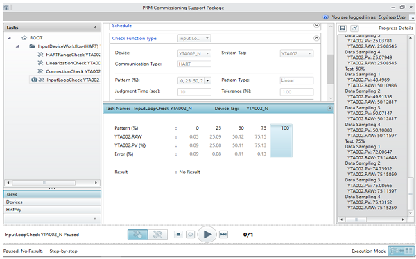 요꼬가와의 DCS인 CENTUM VP와 SIS인 ProSafe-RS에 연결된 파운데이션 필드버스 및 HART 계기는 PRMCSP를 통해 Connection check, Range check, Linearization check, Input & Output loop check를 자동으로 수행하며, 테스트가 완료 후 보고서가 생성된다. 이로 인해 플랜트 시운전 및 정기적인 유지보수 작업에 용이하며, 작업 효율성을 향상시킬 수 있다.