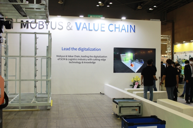 모비어스앤밸류체인이 제10회 국제물류산업대전(이하 산업대전)에 참가해 자율주행 무인 지게차, AGV, 자율 이송장비 관리 시스템 등의 솔루션을 선보였다.
