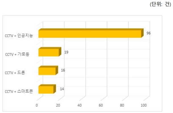 특히, 가로등 기술과 결합된 CCTV는 2015년 2건에서 2019년 6건으로 증가하였는데, 이는 가로등은 카메라 촬영에 필수적인 광원을 제공할 뿐 아니라 많은 곳에 설치되어 CCTV의 사각지대를 없애는데 효과가 있기 때문으로 해석된다.