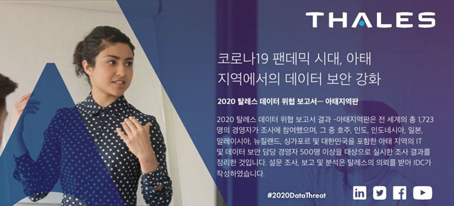 탈레스가 2020 탈레스 데이터 위협 보고서 아태지역판(2020 Thales Asia-Pacific Data Threat Report)을 발표했다.