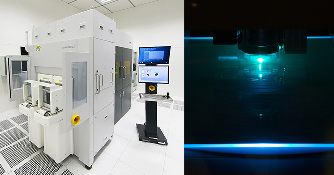 ▲(왼쪽)리소스케일 마스크리스 노광 시스템은 디지털 리소그래피의 이점을 대량 생산에 제공한다.