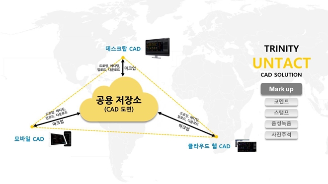 이번 캐드 교육과정은 데스크탑을 기반으로 하는 전통적인 설계프로그램 외에 앞으로 O2O(Online to Offline) 비즈니스 환경이 요구하는 비대면(언택트) 기반의 모바일과 웹상에서도 디지털 도면을 설계할 수 있는 게 특징이다.