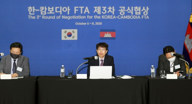 한-캄보디아 자유무역협정(FTA) 제3차 공식협상이 10월 6일(화)부터 8일(목)까지 3일간 화상으로 개최된다.