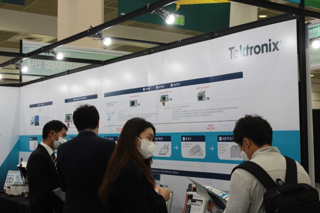 ▲텍트로닉스 담당자가 부스를 찾은 참관객에 자사의 솔루션에 대해 설명하고 있다. (사진 : 서재창 기자)