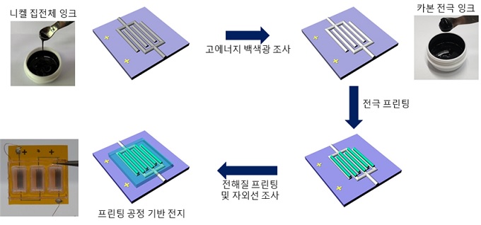 그림. 금속 집전체 잉크와 이를 이용한 3차원 프린팅 기반 전지 제작 과정