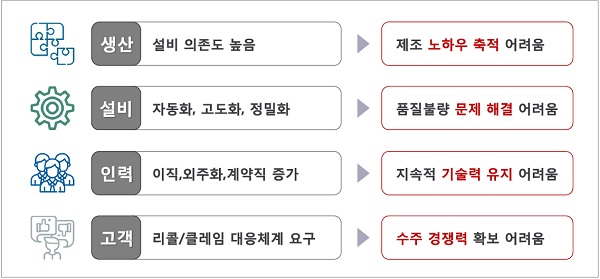 이러한 제조업의 구조적인 위기와 변화 속에, 중소기업이 겪고 있는 문제점과 개선사항을 어떤 것들이 있는지 살펴보겠다.