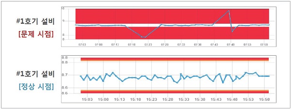 그림 3. 1호기 설비의 사전 징후 발생 시점(07시)의 정상 데이터와이 비교 분석